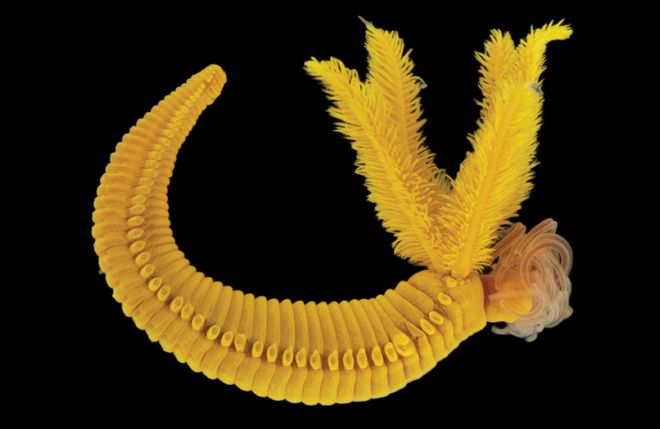 那么,为什么这种蠕虫却没有被毒死?这得从它那身明亮的黄色说起。在深海的永恒黑暗中,大多数生物都是灰白色或深红色,蠕虫这身黄色便十分显眼。